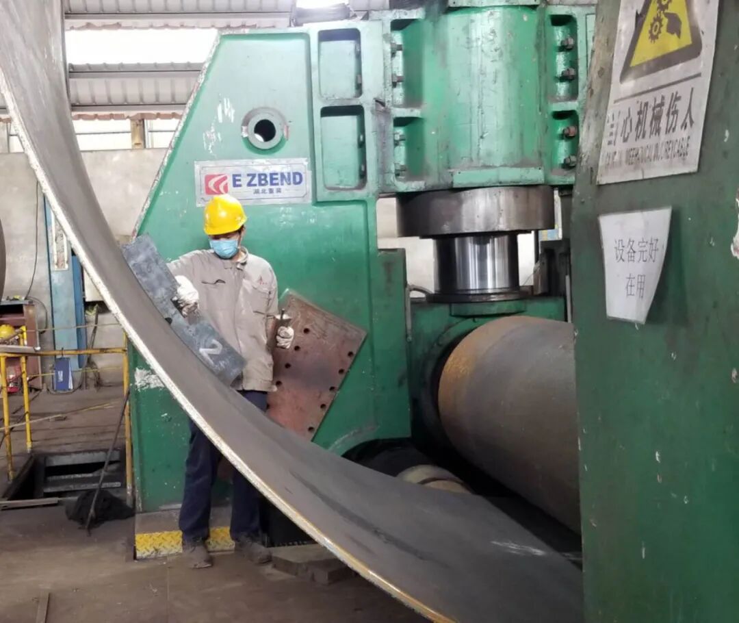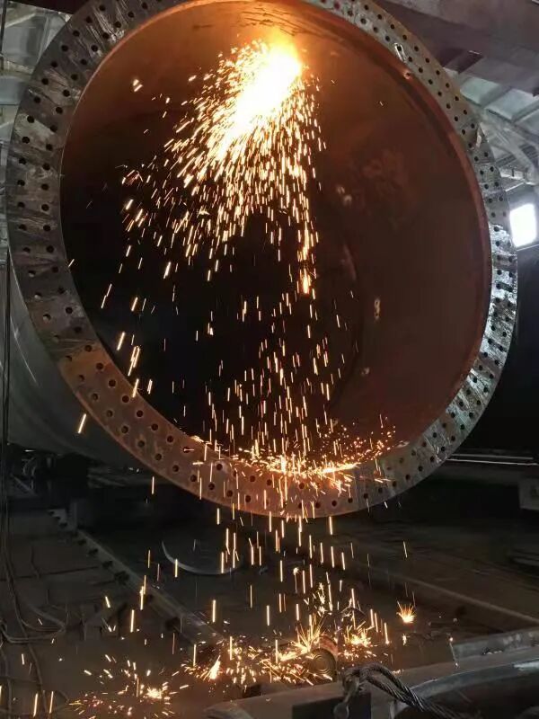 随着数控火焰切割机闪起道道耀眼的火花,风电场塔筒